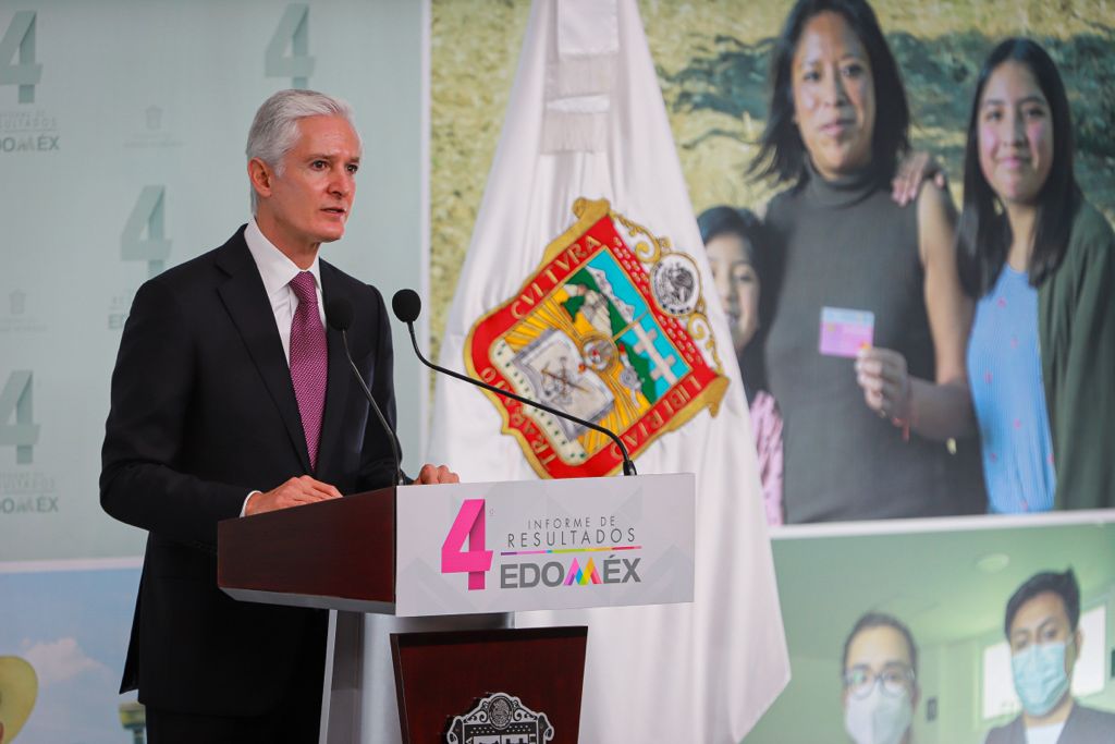 El Gobernador Alfredo del Mazo Maza presentó un balance con motivo de su Cuarto Informe de labores y pronunció un mensaje frente a personajes con poder político e influencia en el entorno nacional de decisiones del presidente de la República, Andrés Manuel López Obrador, como el secretario de Gobernación, Adán Augusto López Hernández, además estuvo arropado por los cinco ex gobernadores de extracción priista, legisladores federales y locales, así como dirigentes partidistas, empresariales y líderes religiosos.