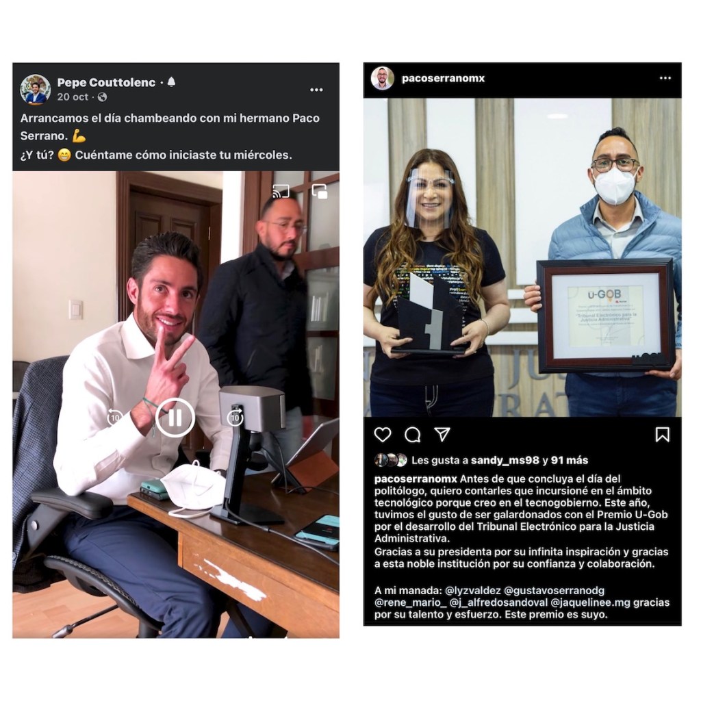 En diferentes momentos; José Alberto Couttolenc Buentello, ha dejado ver que quien maneja las redes sociales del partido es Francisco Javier Serrano González, cuyos datos coinciden con los de una persona física con actividad empresarial, con misma razón social, que formó parte del padrón de proveedores del Tribunal de Justicia Administrativa del Estado de México y que ahora ha sido observado cerca de la presidenta de la CODHEM.