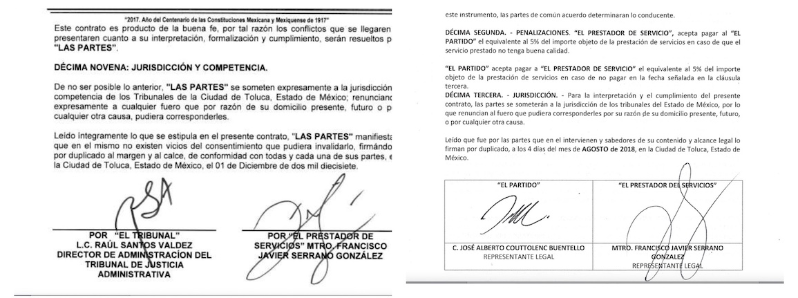 Uno de los contratos en el Tribunal de Justicia fue un monto de un millón de pesos, cuyo servicio fue servicios de capacitación, mientras que la misma razón social tiene firmados documentos con el PVEM para operación de la pagina web.