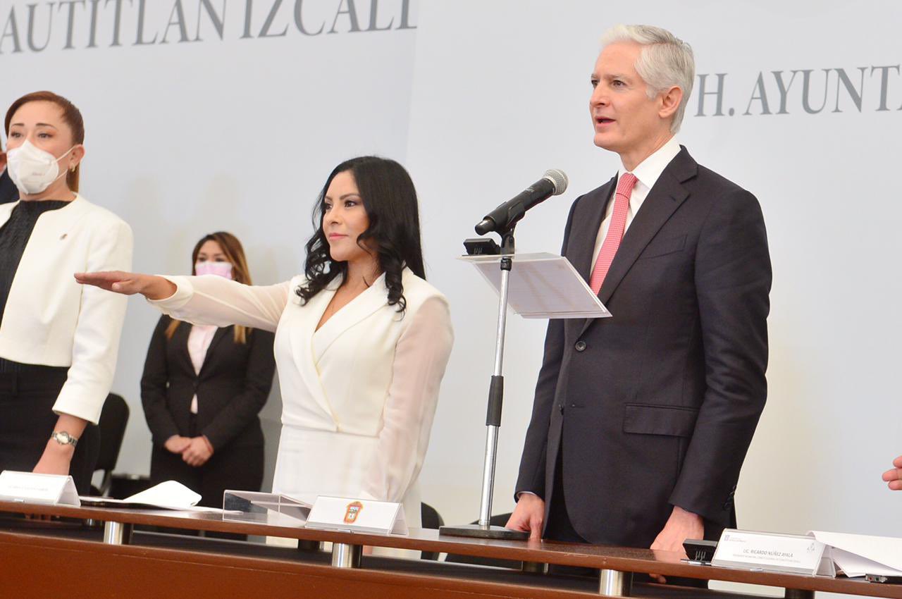 En compañía de su cuerpo edilicio, del Gobernador Alfredo del Mazo; del Presidente del Poder Judicial, Magistrado Ricardo Alfredo Sodi Cuellar; la Presidenta de la Mesa Directiva de la LXI Legislatura, Ingrid Krasopani Schemelensky; el dirigente nacional y estatal del PAN, Marko Cortés Mendoza y Anuar Azar Figueroa, los dirigentes estatales del PRI y el PRD así como legisladores federales y locales representantes de partidos políticos que conforman la coalición Va Por México, Karla Fiesco se comprometió a trabajar por un futuro mejor para cada uno de los izcallenses.