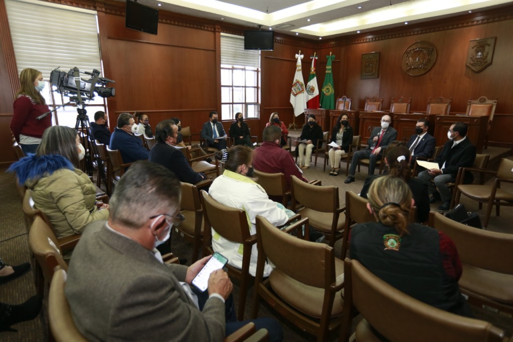 La administración universitaria recibió a las comisiones temporal y emergente, integrada por el secretario general del Sindicato Único de Trabajadores y Empleados de la institución, Pedro Rodríguez Magallanes, y la secretaria sindical de la Federación de Asociaciones Autónomas de Personal Académico, Gilda González Villaseñor, e integrantes de los comités ejecutivos respectivos, para conocer sus pliegos petitorios y escuchar sus demandas, ante la retención del Impuesto Sobre la Renta (ISR), obligada por el Sistema de Administración Tributaria (SAT) a la prestación del aguinaldo.