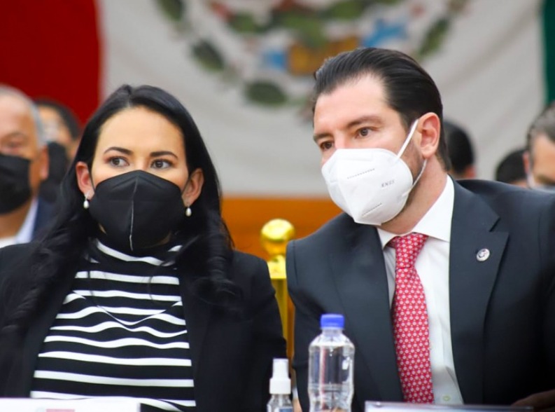 Por el centro: Alejandra del Moral y Darío Zacarías Capuchino se despidieron de la militancia del PRI, a través de un mensaje desde el Recinto de la Revolución en el Comité Directivo Estatal (CDE) del PRI, con lo cual confirmaron su renuncia a la Presidencia y Secretaría General.