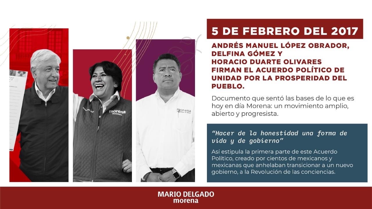 Mario Delgado señaló que con aquel acuerdo se hizo un llamado a las y los mexicanos a incorporarse a la gran tarea de transformación nacional.