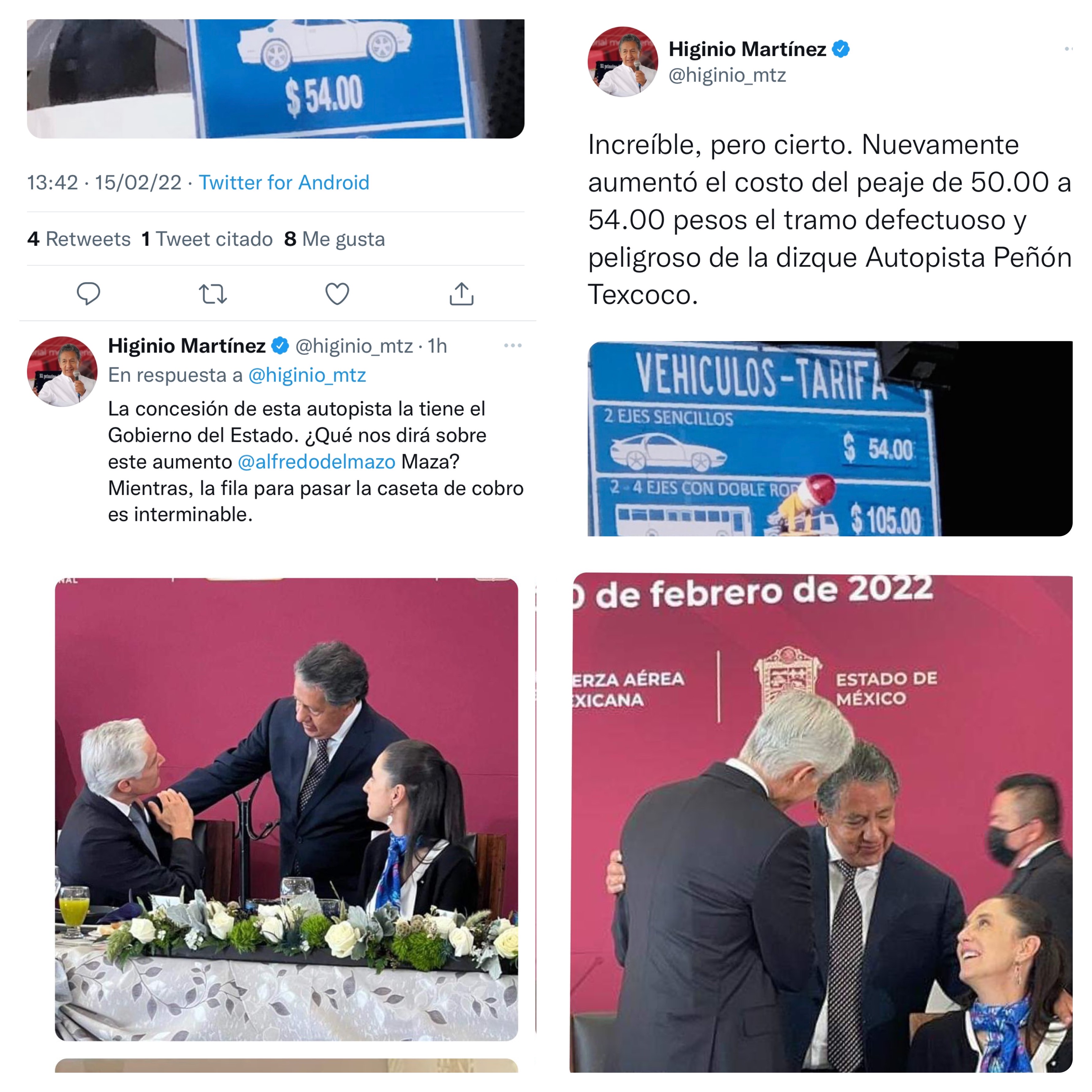 Por la izquierda2: El senador de la República por el Edomex, Higinio Martínez Miranda, criticó el incremento que se dio sobre el costo del peaje en la autopista Peñón-Texcoco que en realidad se dio en diversas carreteras de la entidad, tal como se han quejado los usuarios en redes sociales.
