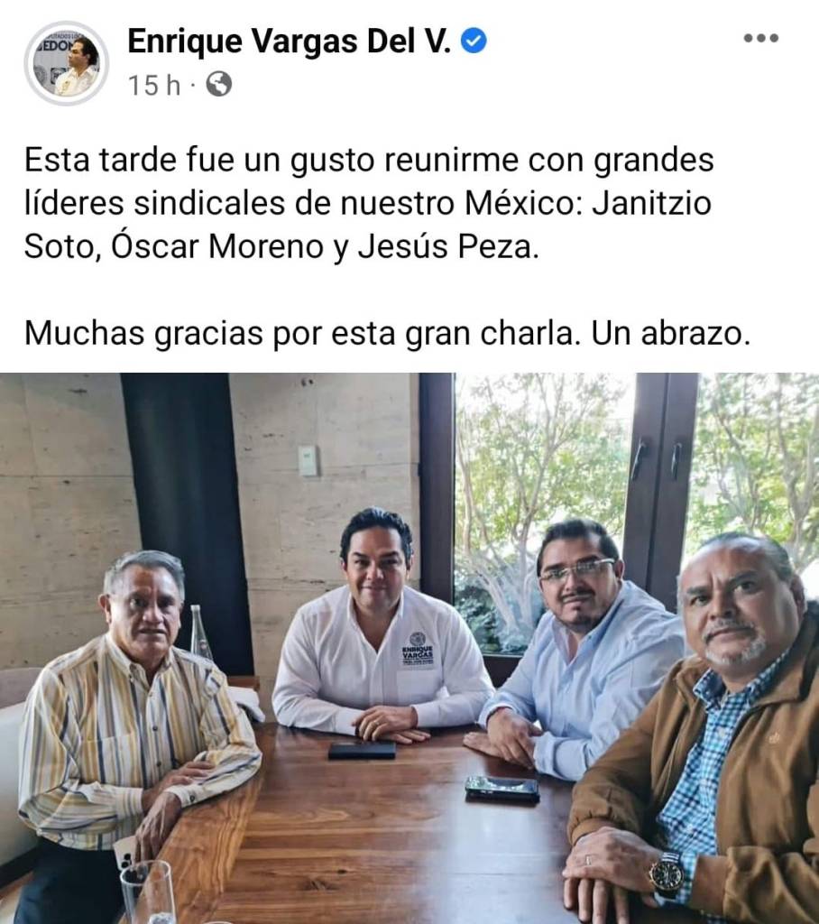 Por cierto, Enrique Vargas se reunió con la dirigencia nacional del PAN, con quienes refrendó la postura de que su partido no generará acuerdos antes del 2023 que tengan que ver con nombres específicos para la coalición, sin que los mismos garanticen competitividad y el triunfo en las urnas.