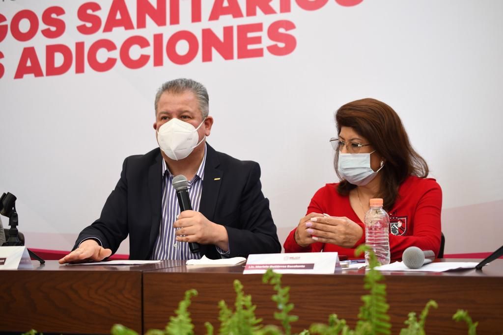 Por la izquierda2: El secretario de Salud, Francisco Javier Fernández Clamont y la presidenta Municipal de Tecámac, Mariela Gutiérrez Escalante, instalaron el Comité Municipal de Salud contra Riesgos Sanitarios y Contra las Adiciones, donde la edil anunció el programa “Médico en tu Casa” y “Médico en tu Chamba” que acercará los servicios de salud a las personas del municipio.