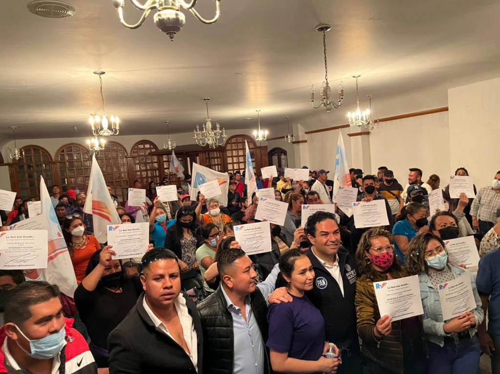 Por la derecha: Enrique Vargas del Villar, el coordinador del Grupo Parlamentario del PAN en la LXI Legislatura Local y Juan Pedro García Martínez, el coordinador estatal de la “Red Vargas” tomaron protesta a coordinadores distritales y seccionales en Ecatepec, donde no tiene presencia dicho instituto político.