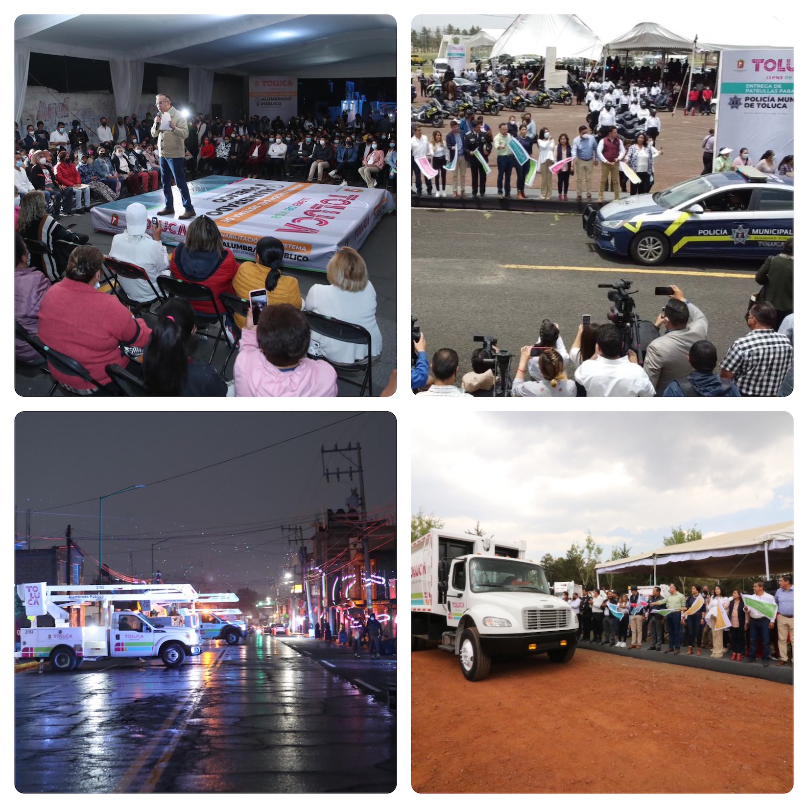 Por el centro: El presidente Municipal de Toluca, Raymundo Martínez Carbajal, tuvo un día completo de entrega de acciones, iniciando con patrullas para seguridad pública; luego camiones recolectores de residuos sólidos, puso en marcha trabajos de bacheo y concluyó con inicio de jornada con rehabilitación del sistema de alumbrado.
