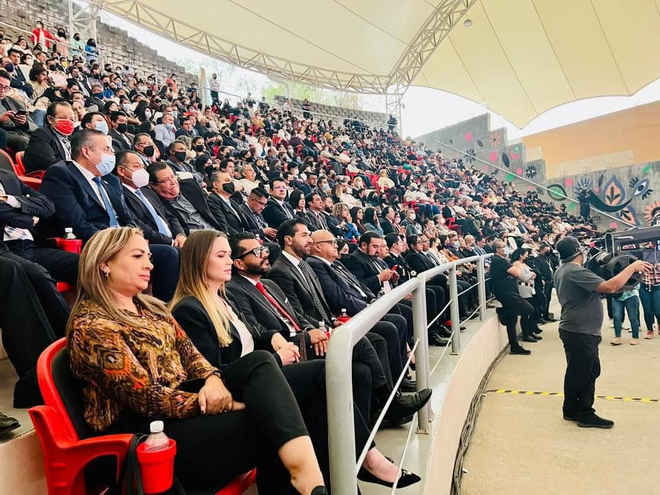 En su discurso, Fernando Flores recordó que Metepec fue el primer municipio en capacitar al cabildo y gabinete en políticas de empoderamiento respecto de igualdad de género, punto en el que reconoció la fortaleza de la titular de dicha dependencia Esmeralda de Luna Sánchez.