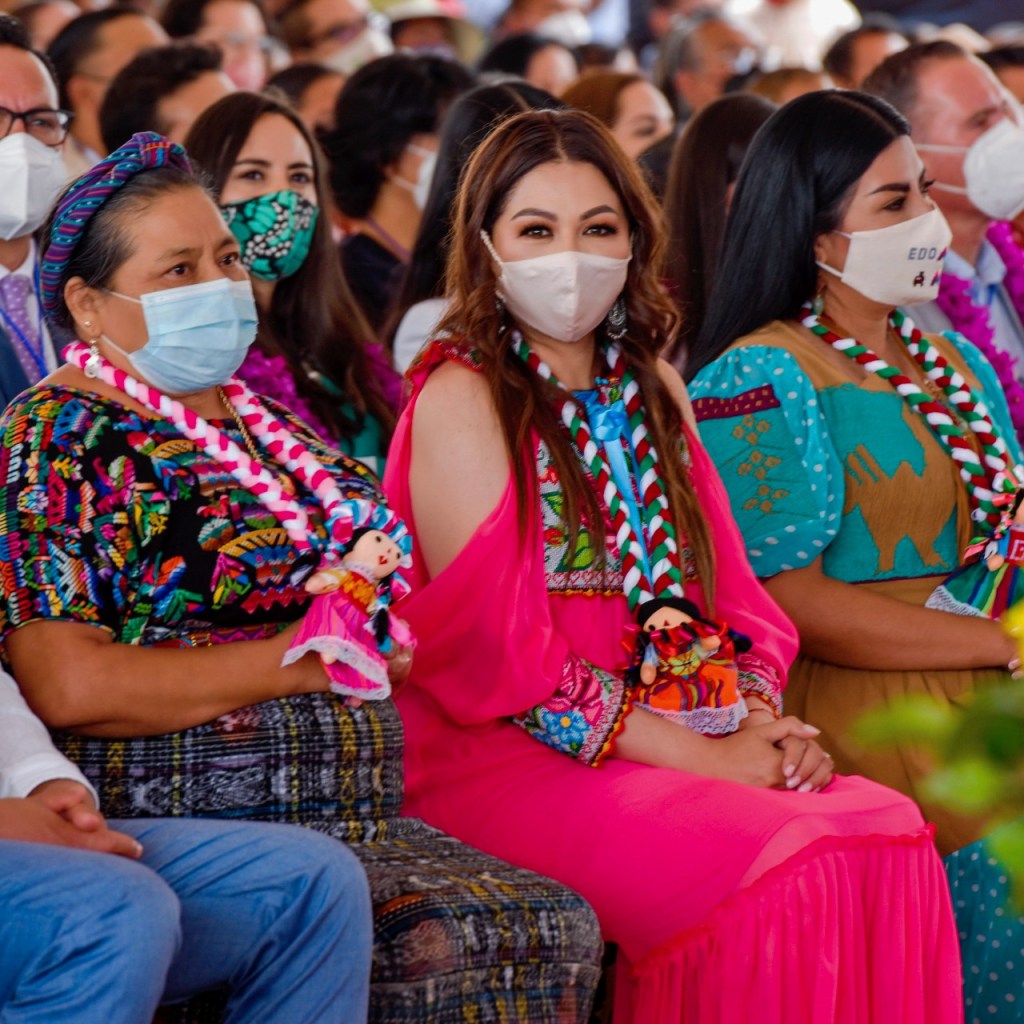 Por el centro: La presidenta de la Comisión de Derechos Humanos del Estado de México (Codhem), Myrna García Morón, recibió a la Premio Nobel de la Paz, Rigoberta Menchú Tum, en el marco del Decenio Internacional de las lenguas indígenas.