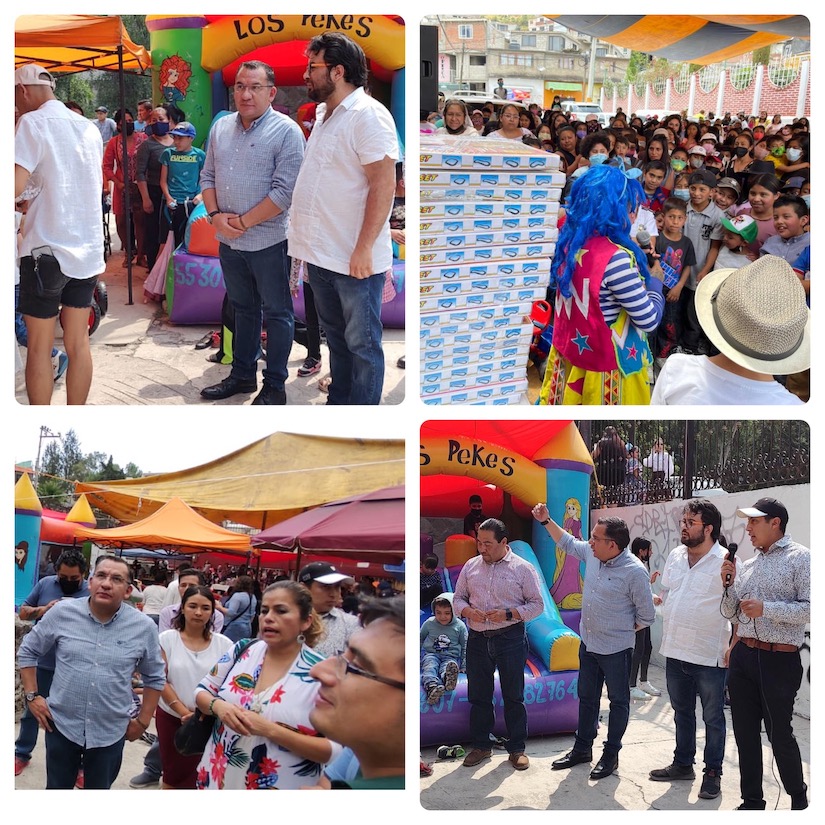 Por la izquierda3: El décimo primer regidor de Naucalpan, Mauricio Aguirre Lozano, realizó diversos actos para festejar a niños, niñas y mamás del municipio, a quienes llevó actividades y obsequios.