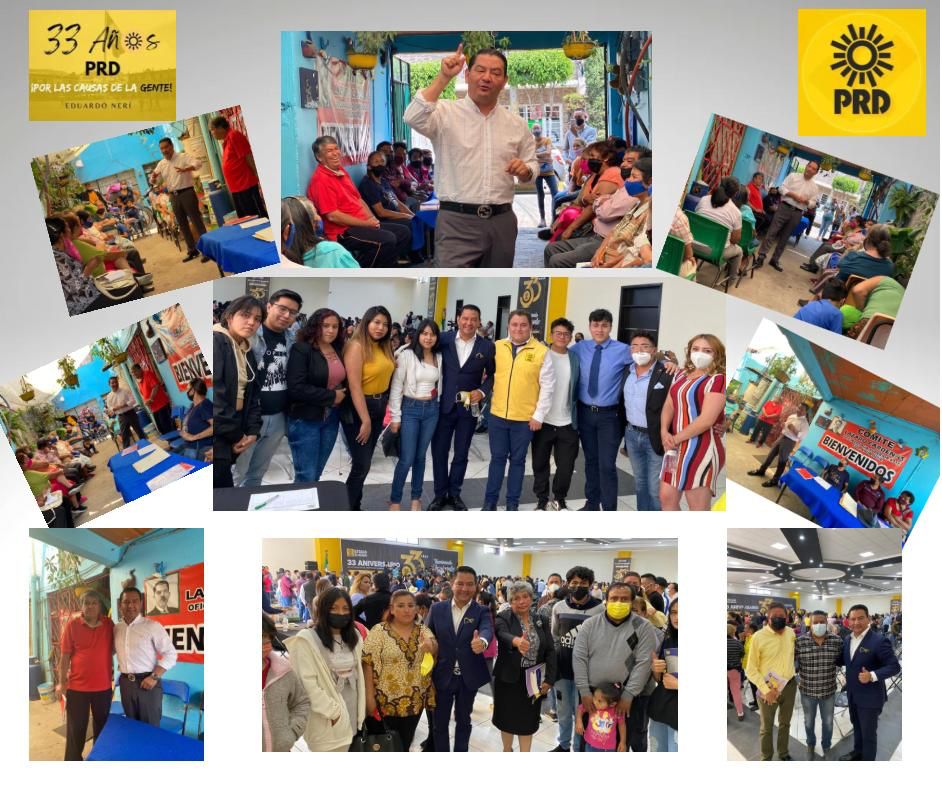 Por la izquierda: El consejero Nacional y presidente del Comité Municipal del PRD en Metepec, Eduardo Neri Rodríguez, confirmó su interés por la candidatura a gobernador en el marco del 33 Aniversario del partido.