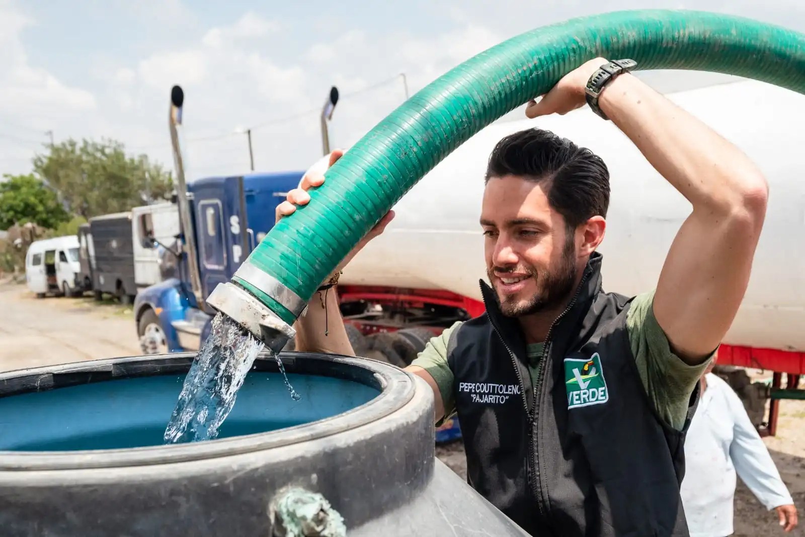 Por la izquierda: Quizá no resuelva el problema, pero José Alberto Couttolenc Buentello, el dirigente estatal del Partido Verde Ecologista de México (PVEM), actuó con pericia política al implementar la estrategia de llevar pipas de agua a las zonas de Ecatepec, donde la gente carece del vital líquido.