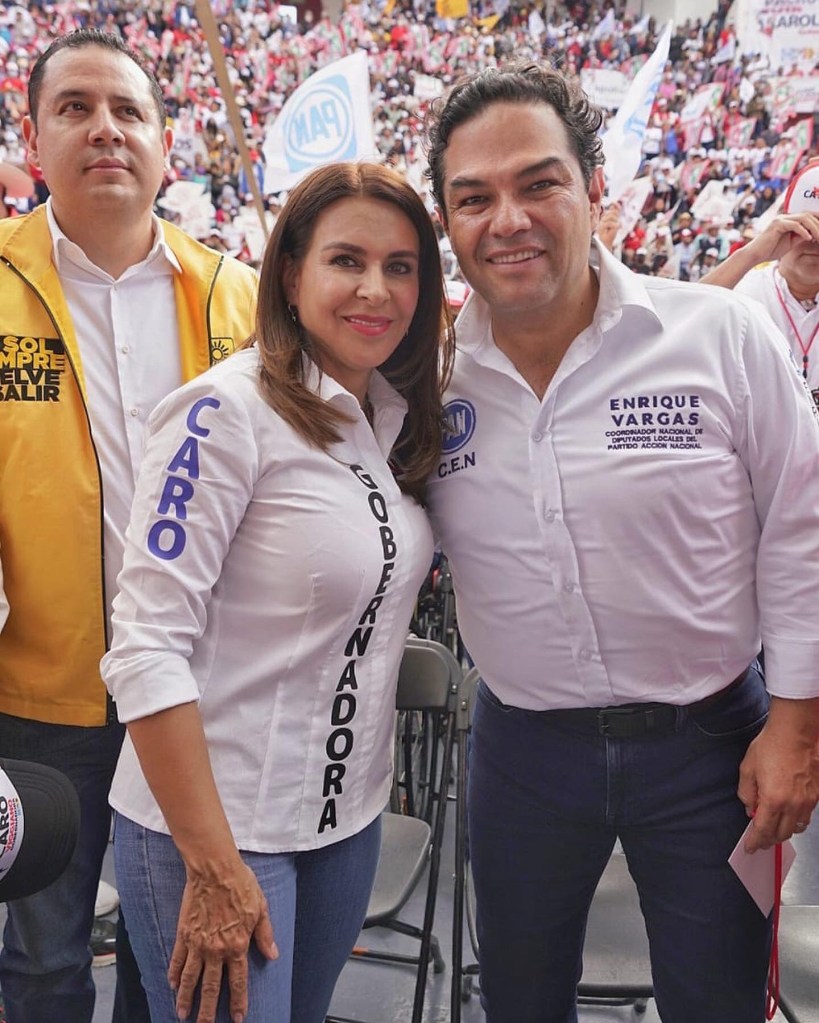Por la derecha: El coordinador nacional de diputados locales del PAN, Enrique Vargas del Villar, acudió como invitado especial al cierre de campaña de Carolina Viggiano Austria, la candidata de la coalición PRI-PAN-PRD a gobernadora de Hidalgo.