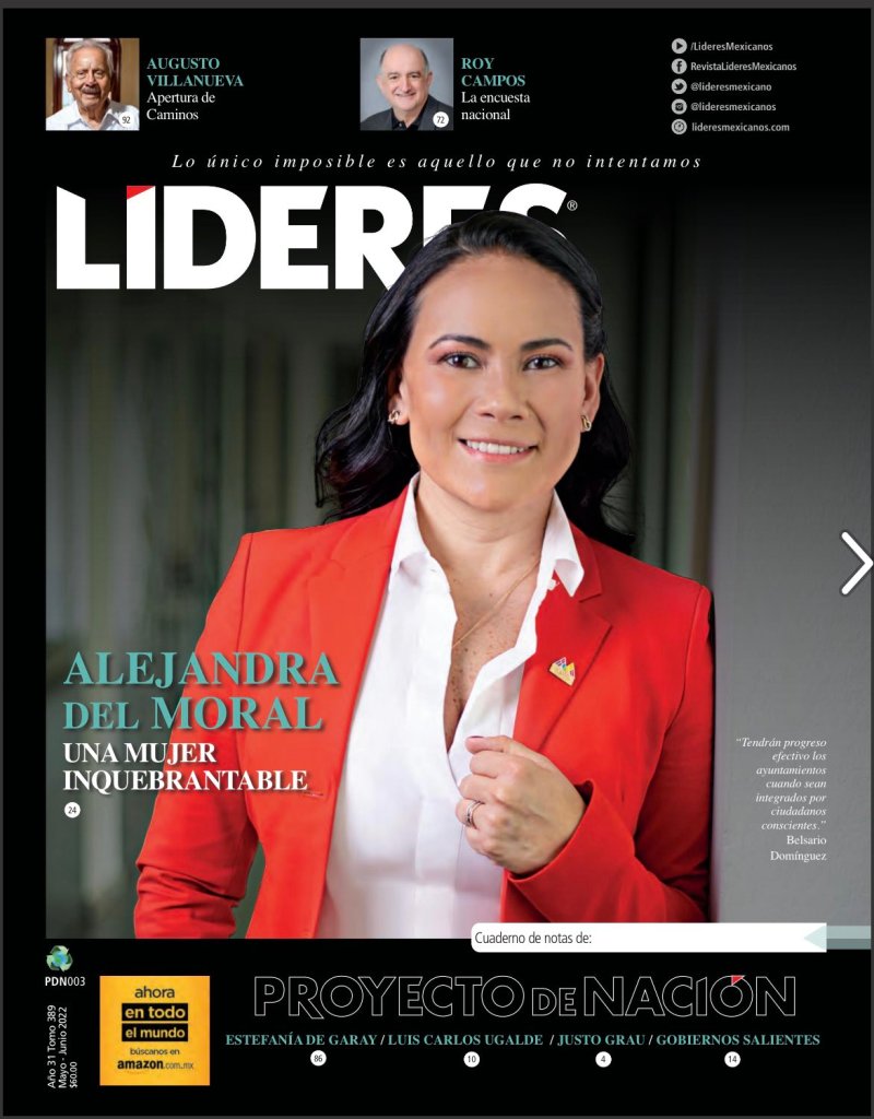 Por el centro2: La secretaria de Desarrollo Social, Alejandra del Moral Vela, apareció en la portada de la prestigiada revista “Líderes Mexicanos”, mientras que en semanas anteriores fue considerada entre las 100 mujeres mas poderosas de México, por la publicación “Forbes México”.