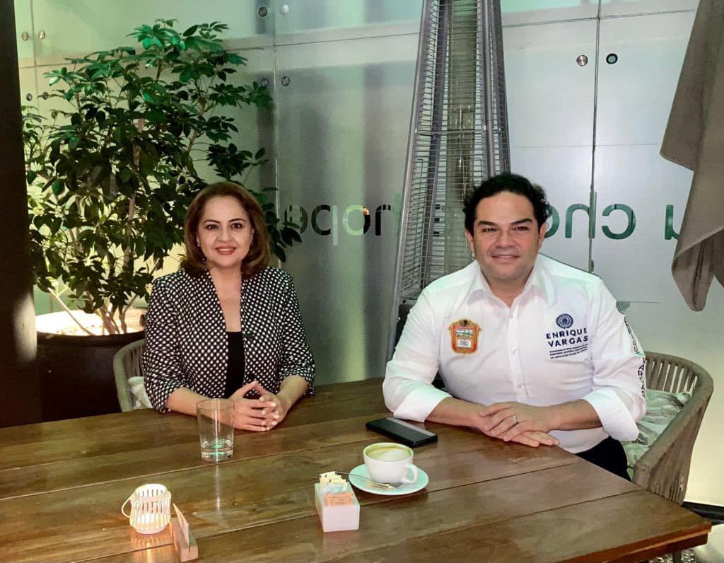 Por la derecha: El coordinador de los diputados locales del PAN, Enrique Vargas del Villar y la legisladora federal del PRI, Ana Lilia Herrera Anzaldo, se reunieron con la finalidad de platicar sobre diversos asuntos como los Gobiernos de Coalición, que forman parte de la agenda de ambos políticos.