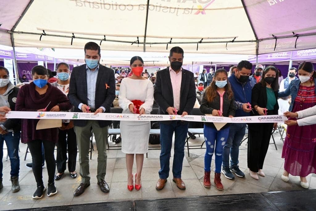 Por la izquierda: La presidenta Municipal de Donato Guerra, Carmen Albarrán Gabriel, agradeció al gobierno estatal, por la Caravana por la Justicia Cotidiana que se lleva a cabo en la demarcación, la cual estará hasta el domingo 31 de julio.