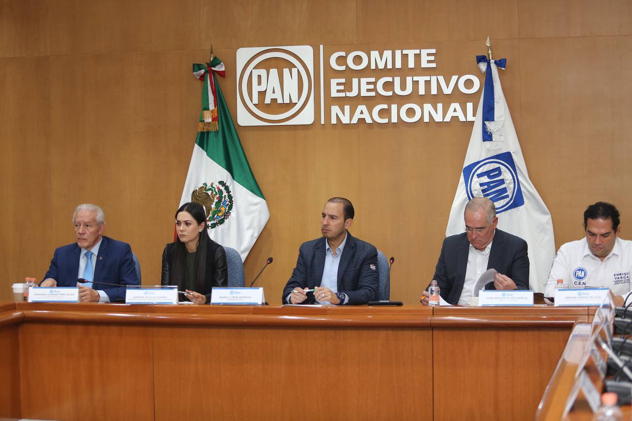 Por la derecha: El presidente del Comité Ejecutivo Nacional (CEN) del PAN, Marko Cortés Mendoza, dio a conocer una reunión con organizaciones de la sociedad civil, en la que participó el mexiquense, Enrique Vargas del Villar.