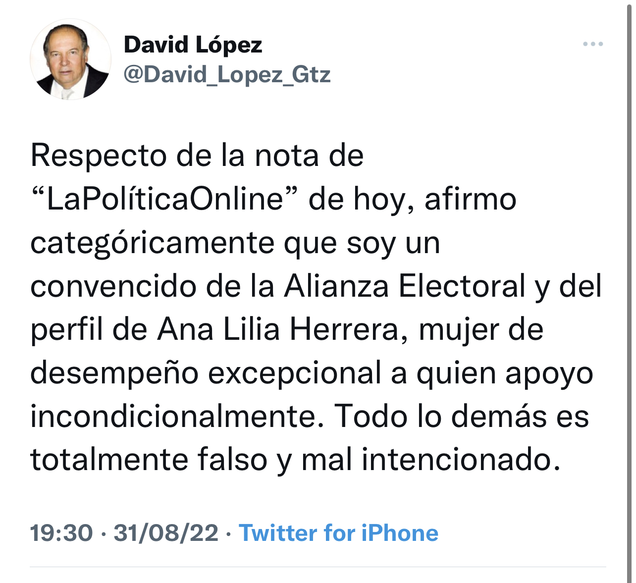 - David López reconoce que esta apoyando a Herrera Anzaldo