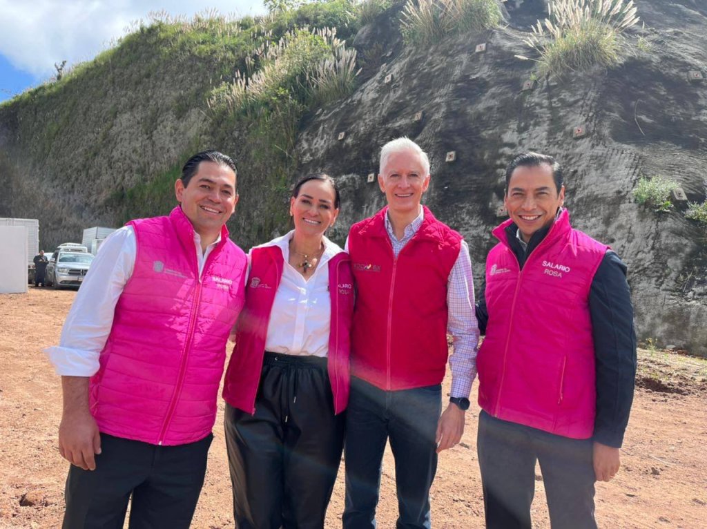 Iriarte lució sonriente, vistiendo un chaleco, en color rosa, con el emblema del Salario Rosa, al lado del gobernador del Mazo, en una municipalidad que ambos gobernaron y donde mujeres huixquiluquenses recibieron muy bien a Alejandra del Moral, quien es señalada como la candidata del mandatario.