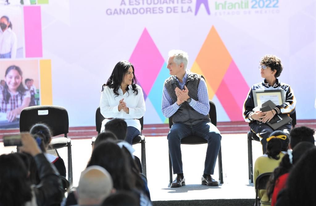 A la derecha de Alejandra del Moral, estaba sentado Luis Felipe Puente Espinoza, el secretario General de Gobierno, a la izquierda Laura Barrera Fortoul, posteriormente Ana Lilia Herrera Anzaldo, ambas diputadas federales. Alejandra y Laura, vestidas con ropa roja y Herrera Anzaldo, con naranja y gris.