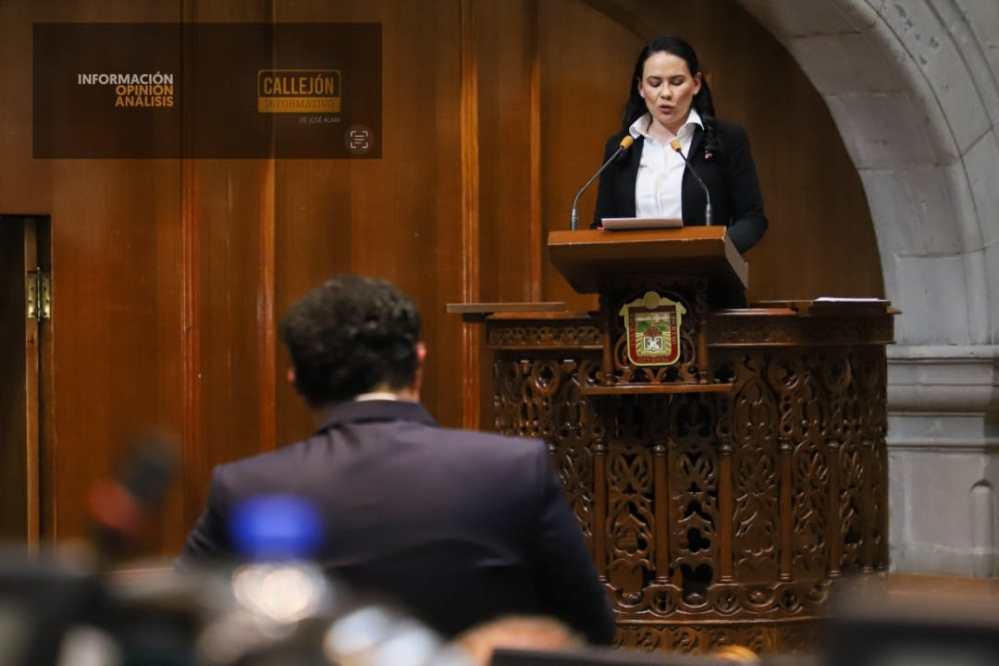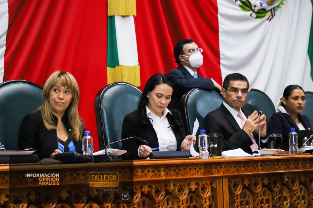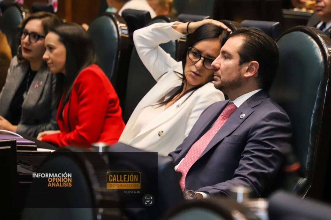 Mientras esto ocurría, en las curules se observaban diversos carteles con la imagen de Alejandra del Moral y el programa Salario Rosa, según los morenitas, muy críticos.