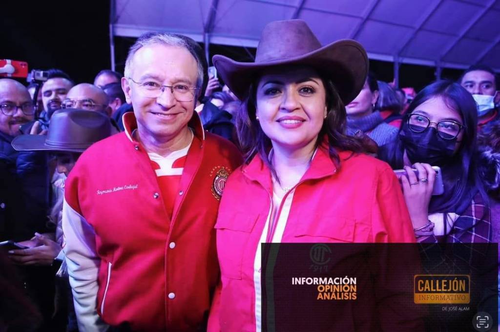 Por el centro: El presidente Municipal de Toluca, Raymundo Martínez Carbajal, recibió como invitada especial a la legisladora federal priista, Ana Lilia Herrera Anzaldo -aspirante a gobernadora- durante la presentación de la Banda MS, como parte de la Feria y Festival Cultural Internacional del Alfeñique 2022.