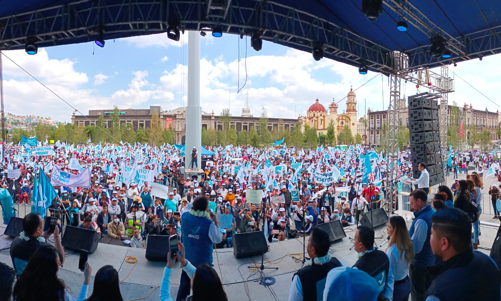 Desde la plaza de los Mártires, en la capital mexiquense, llevaron a cabo la toma de protesta de coordinadoras y coordinadores electorales. Ahí, el dirigente estatal, Mario Cervantes Palomino, subrayó que Nueva Alianza es de las y los trabajadores de la educación y no de las cúpulas, “eso se acabó” -dijo- en clara referencia a los dirigentes sindicales del SNTE.