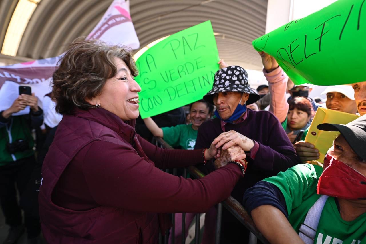 Por la izquierda: La maestra Delfina Gómez Álvarez, precandidata única de MORENA a la gubernatura del Estado de México, ante militantes y simpatizantes mexiquenses de la Cuarta Transformación, afirmó que el movimiento está imparable.