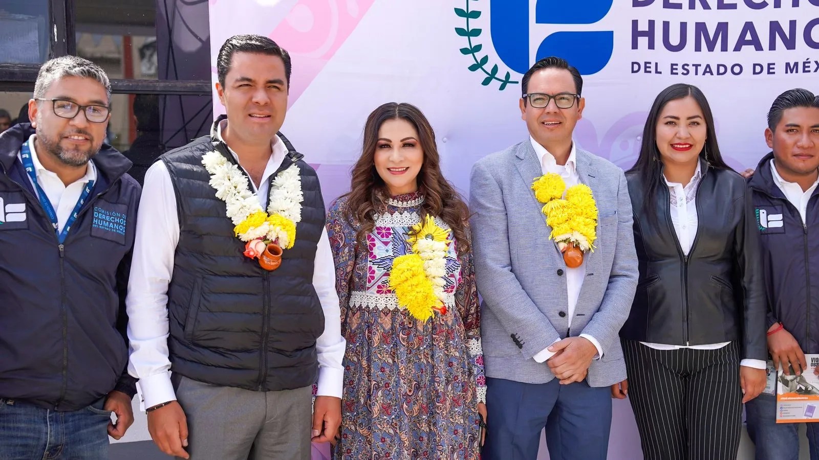 Por la derecha: La presidenta de la Comisión de Derechos Humanos del Estado de México (CODHEM), Myrna Araceli García Morón y el presidente municipal de Almoloya de Juárez, Óscar Sánchez García signaron un acuerdo de voluntades para implementar acciones que garanticen el ejercicio efectivo de los derechos humanos y con ello, tener mejores sociedades.