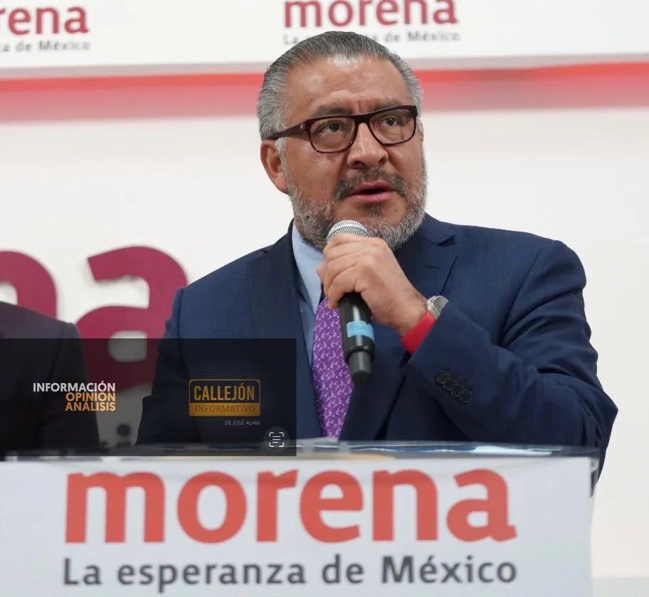 Por la izquierda: Horacio Duarte Olivares, el coordinador de morena, informó que hasta el momento han presentado ante el Instituto Electoral del Estado de México (IEEM) 33 denuncias por diversos hechos atribuibles a Alejandra del Moral, del PRI, y al bloque que conforman junto al PAN, PRD y Partido Nueva Alianza, que constituyen actos anticipados de campaña, vulneración al interés superior de la niñez, uso indebido de programas sociales e infracciones en materia electoral, principalmente.