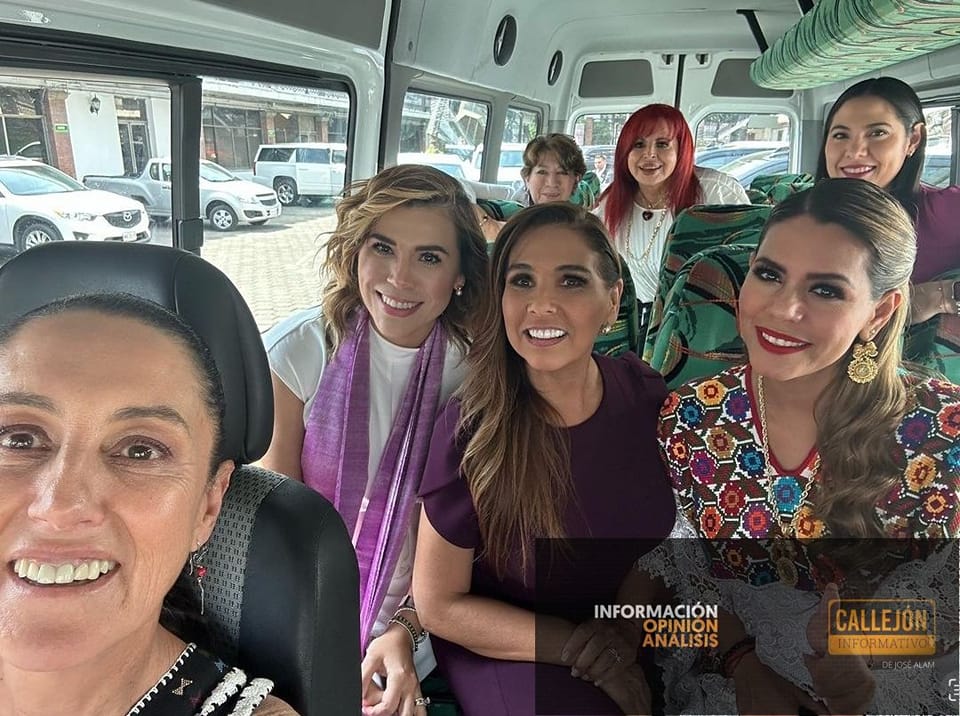 Sobre el acto, circularon diversas fotografías donde se observa a Sheinbaum con sus homólogas de Baja California, Marina del Pilar Ávila; de Campeche, Layda Sansores San Román; de Colima, Indira Vizcaíno; de Guerrero, Evelyn Salgado Pineda, y de Quintana Roo, Mara Lezama. Sin embargo ya en el evento estuvo presente la séptima gobernadora de morena, Lorena Cuéllar Cisneros, de Tlaxcala, así como la Secretaría del Trabajo, Luisa María Alcalde; la Secretaria de Economía, Raquel Buenrostro y la titular de la Secretaría de Cultura, Alejandra Frausto.