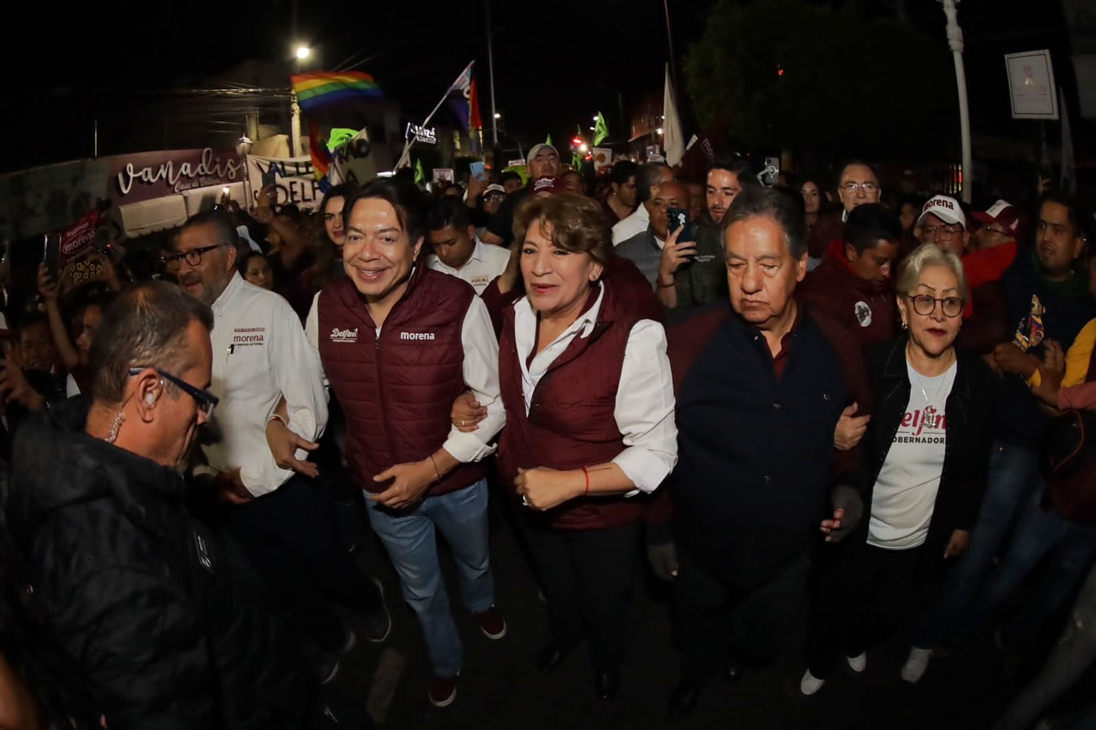 Delfina Gómez salió de su domicilio para caminar hacia la plaza principal de Texcoco, considerado el corazón de morena, por ser el sitio de origen del principal liderazgo del movimiento en la entidad. Caminó acompañada por los texcocanos Horacio Duarte Olivares, coordinador general de Campaña; Higinio Martínez Miranda, delegado del CEN; así como Mario Delgado Carrillo, el líder de morena.