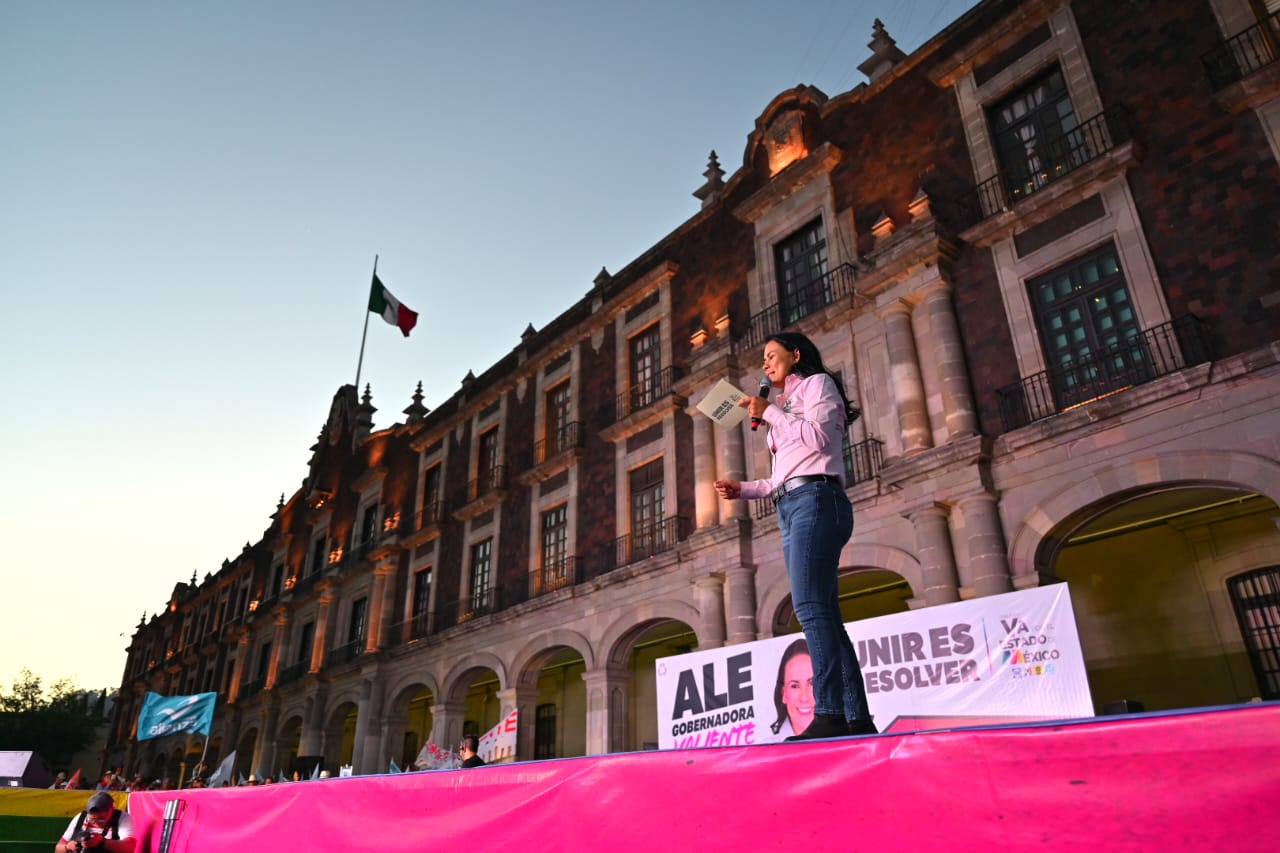 Finalmente, la candidata de la coalición “Va por el Edomex” (PRI-PAN-PRD-Nueva Alianza), encabezó un acto, por la tarde-noche, frente a Palacio de Gobierno, en Toluca, donde la gente de morena realizó diversos actos previos a la campaña, y en donde se buscó mostrar el músculo del PRI.