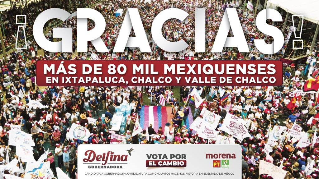 Por la izquierda2: Delfina Gómez Álvarez, candidata de morena-PT-PVEM, a gobernadora, destacó que el sábado acudieron 80 mil personas a los actos proselitistas de Ixtapaluca, Chalco y Valle de Chalco, además dieron a conocer que en Ecatepec hubo 40 mil personas el domingo.