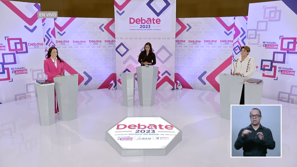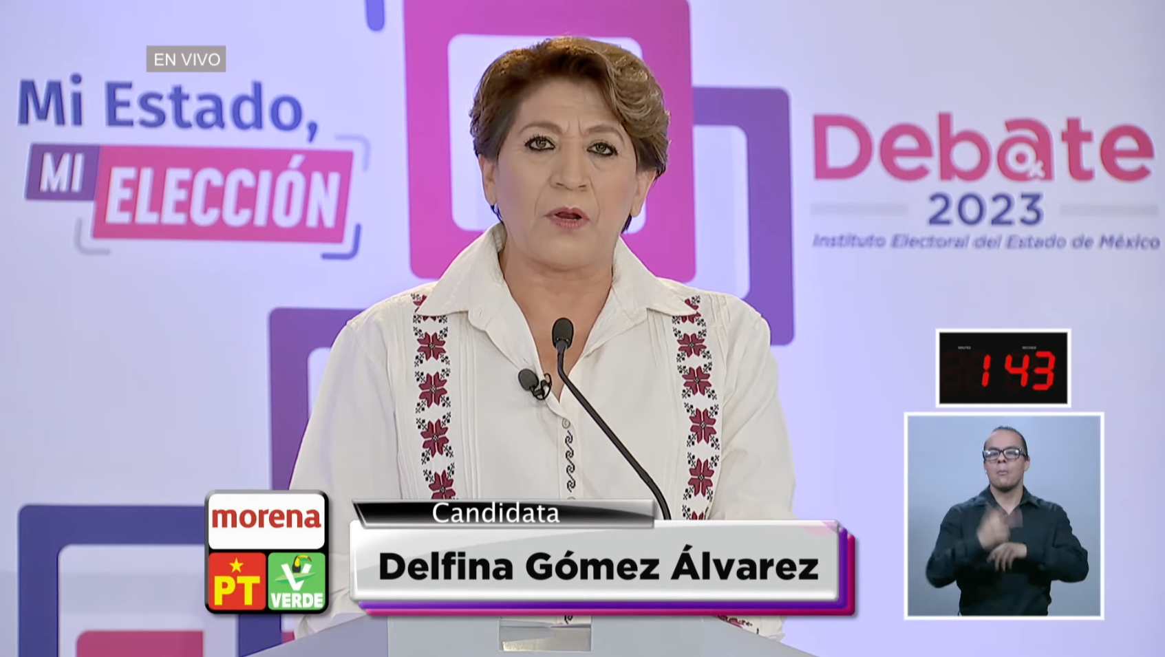 Durante el debate llamó a los mexiquenses a no venderse con tinacos, y a tener tranquilidad de que no perderán programas sociales si la eligen.