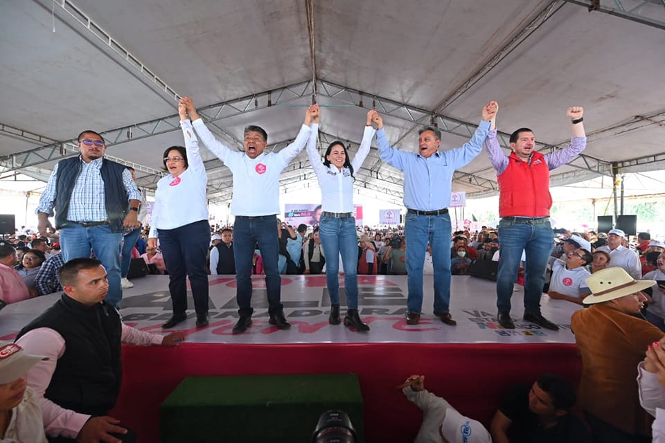 En Toluca, la capital del estado de México, el panismo organizó un acto proselitista en favor de Alejandra del Moral, quien es la candidata de la coalición “Va por Edomex”, con la presencia de sus activos nacionales: Maru Campos Galván, Tere Jiménez Esquivel y Mauricio Kuri González, gobernadoras de Chihuahua y Aguascalientes, respectivamente, así como el gobernador de Querétaro.