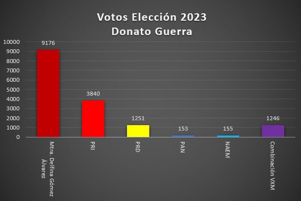 Delfina obtuvo mas de nueve mil votos en Donato Guerra, números que superan a los que significarían los partidos de la coalición PRI-PAN-PRD-Nueva Alianza.