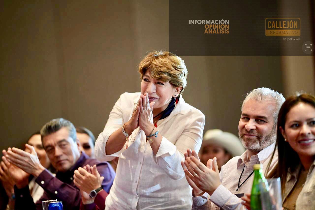 Por la izquierda: Delfina Gómez Álvarez, la candidata ganadora a la Gubernatura del estado de México, acudió a la reunión del Consejo Nacional de morena, donde se aprobaron los lineamientos para la elección del coordinador o coordinadora de la Defensa de la Transformación que será la antesala de la candidatura presidencial.