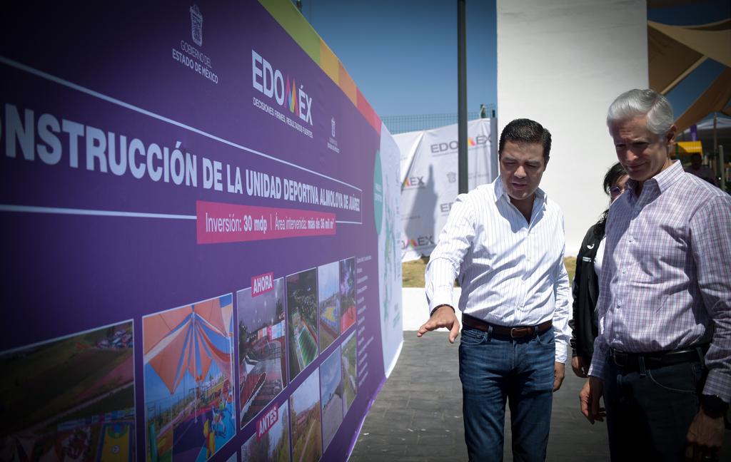 Por el centro: El presidente Municipal de Almoloya de Juárez, Oscar Sánchez García, recibió al gobernador Alfredo del Mazo Maza, quien entregó estímulos económicos a atletas y entrenadores de distintos municipios, e informó que durante la actual administración se ha respaldado a más de 4 mil deportistas del Estado de México.