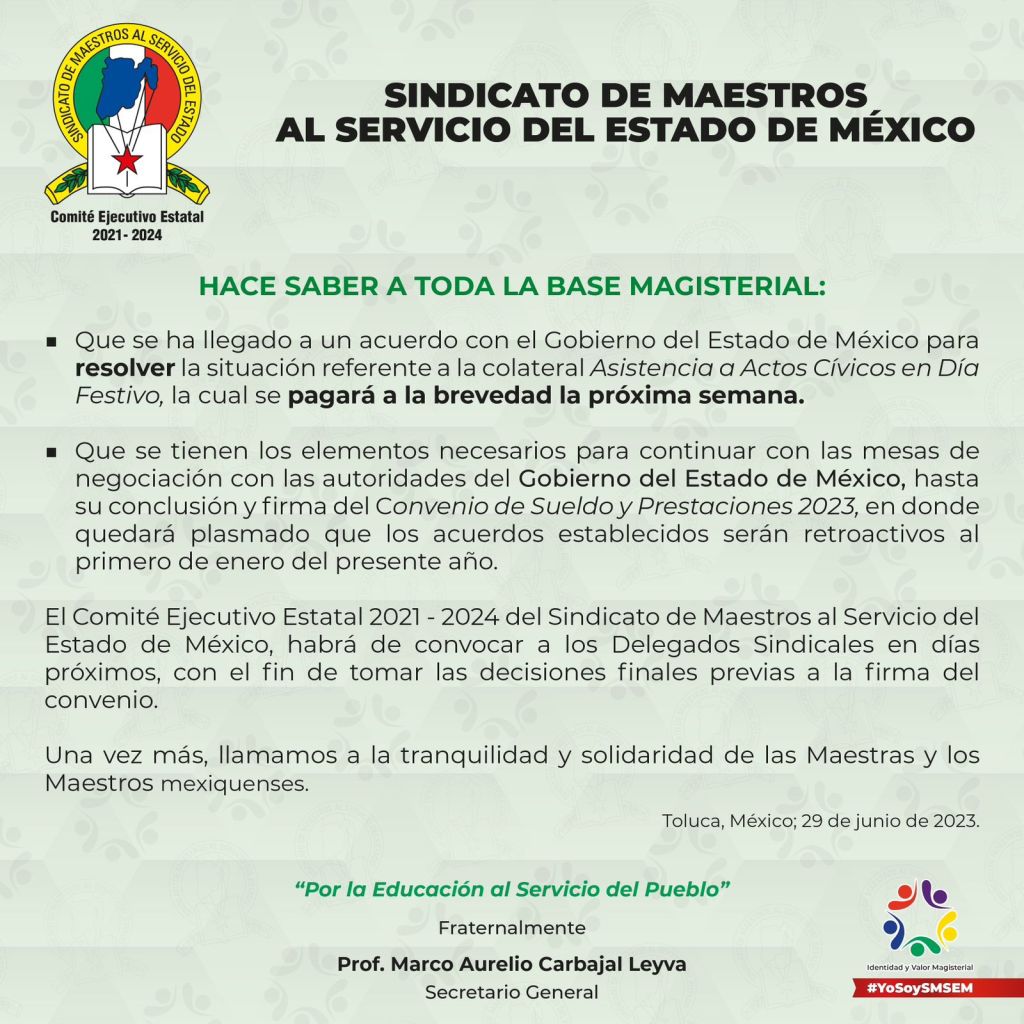 Es claro que el dirigente estatal del SMSEM, Marco Aurelio Carbajal Leyva, comunicó de manera formal a las autoridades de Finanzas y Educación del gobierno estatal, sobre la inconformidad de los maestros y las medidas que se tomarían.