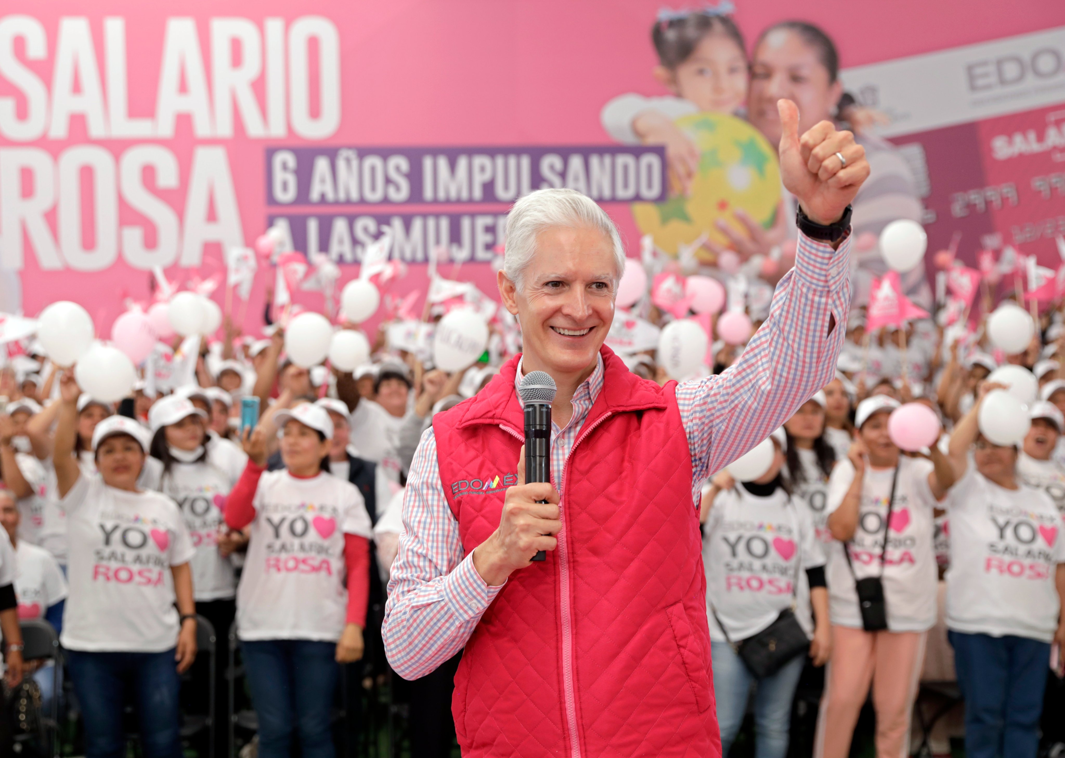Del Mazo Maza recordó que el Salario rosa nació como un proyecto que buscó el desarrollo y reconocimiento al trabajo diario de las mujeres, principalmente de las amas de casa, quienes se esfuerzan todos los días por sacar adelante a sus familias, convirtiéndolas en el principal pilar de sus hogares, y gracias a ellas es que hay muchos niños, jóvenes y adultos que han logrado salir adelante.