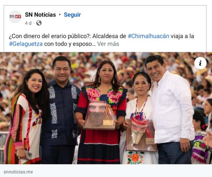 Por la izquierda2: En diversos sectores de Chimalhuacán no se observó con muy buenos ojos que la presidenta Municipal, Xóchitl Flores Jiménez y su esposo, hayan acudido a la celebración de actividades de la Gelaguetza, en Oaxaca, mientras en la demarcación la gente sufre de la falta de agua y la creciente ola de inseguridad. En diversos medios informativos y redes sociales, la gente de Chimalhuacán se queje que llevan mas de un mes sin el servicio del vital líquido.