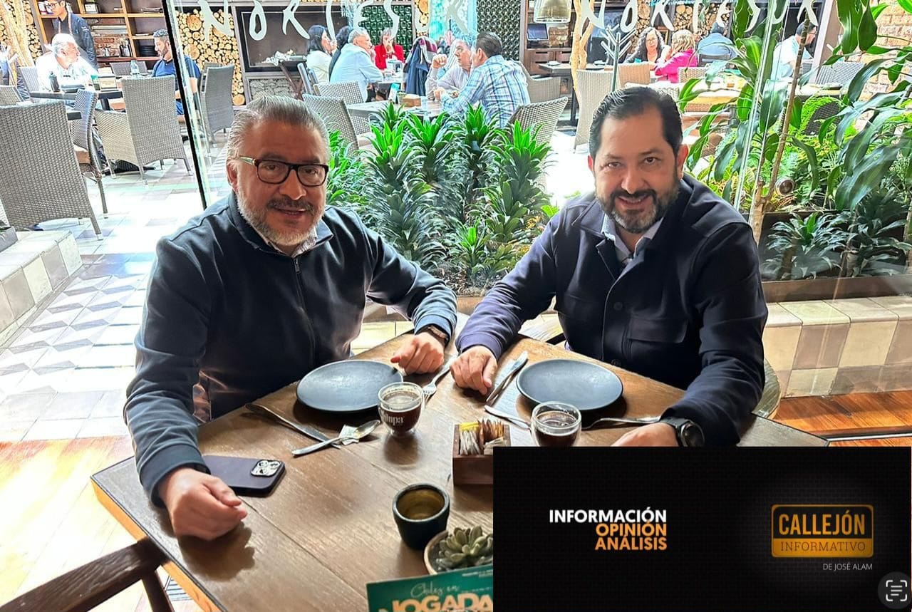 Por la izquierda2: Ayer por la mañana se dejaron ver desayunando juntos Horacio Duarte Olivares y Paco Vázquez, quienes serán elementos claves en el esquema de gobierno de Delfina Gómez Álvarez.