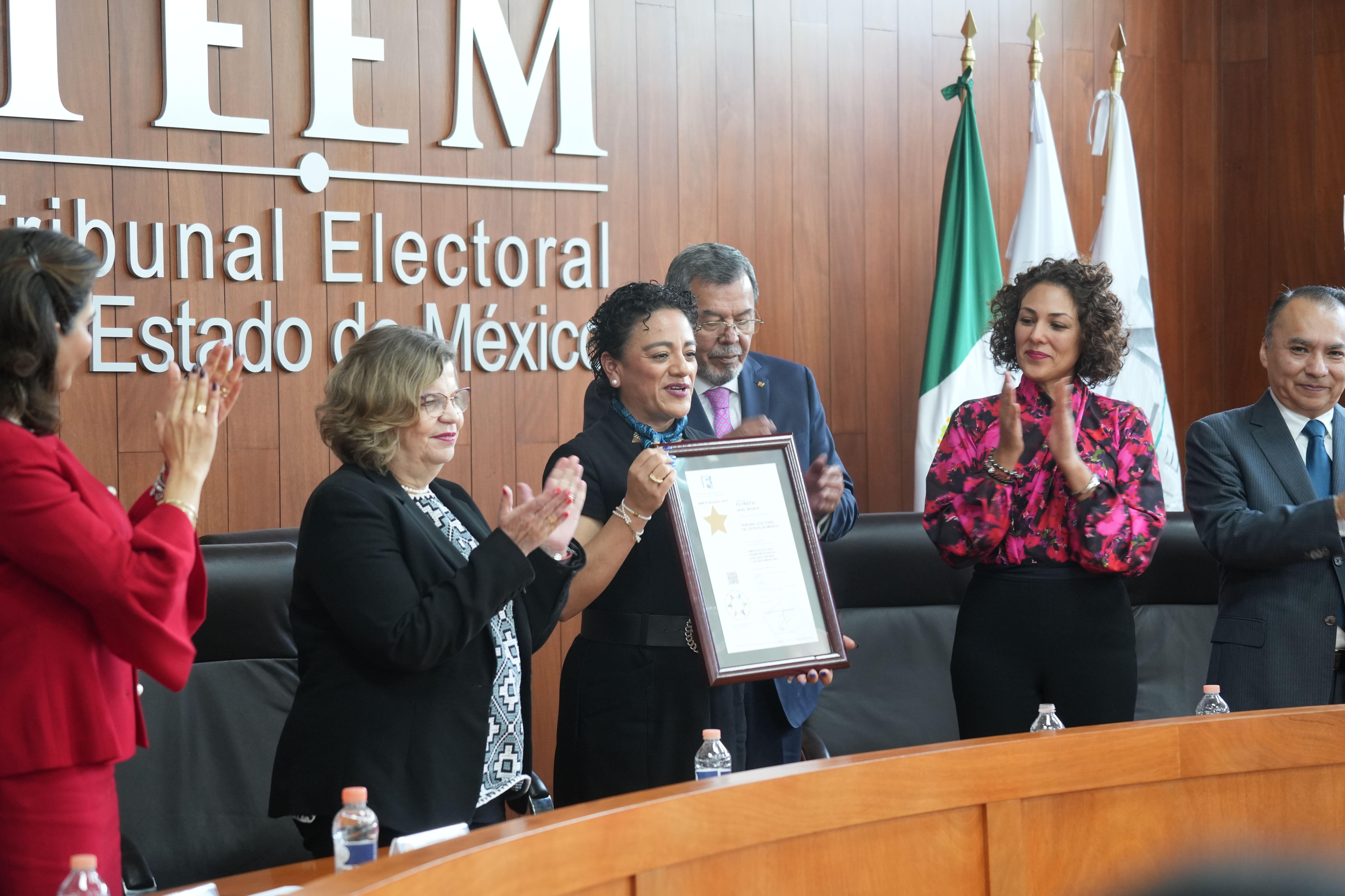 Por el centro: El Instituto Nacional de las Mujeres entregó el Certificado de Bronce en la Norma Mexicana NMX-R-025-SCFI-2015 al Tribunal Electoral del Estado de México presidido por Leticia Victoria Tavira, lo cual sin duda es un logro importante para su gestión.
