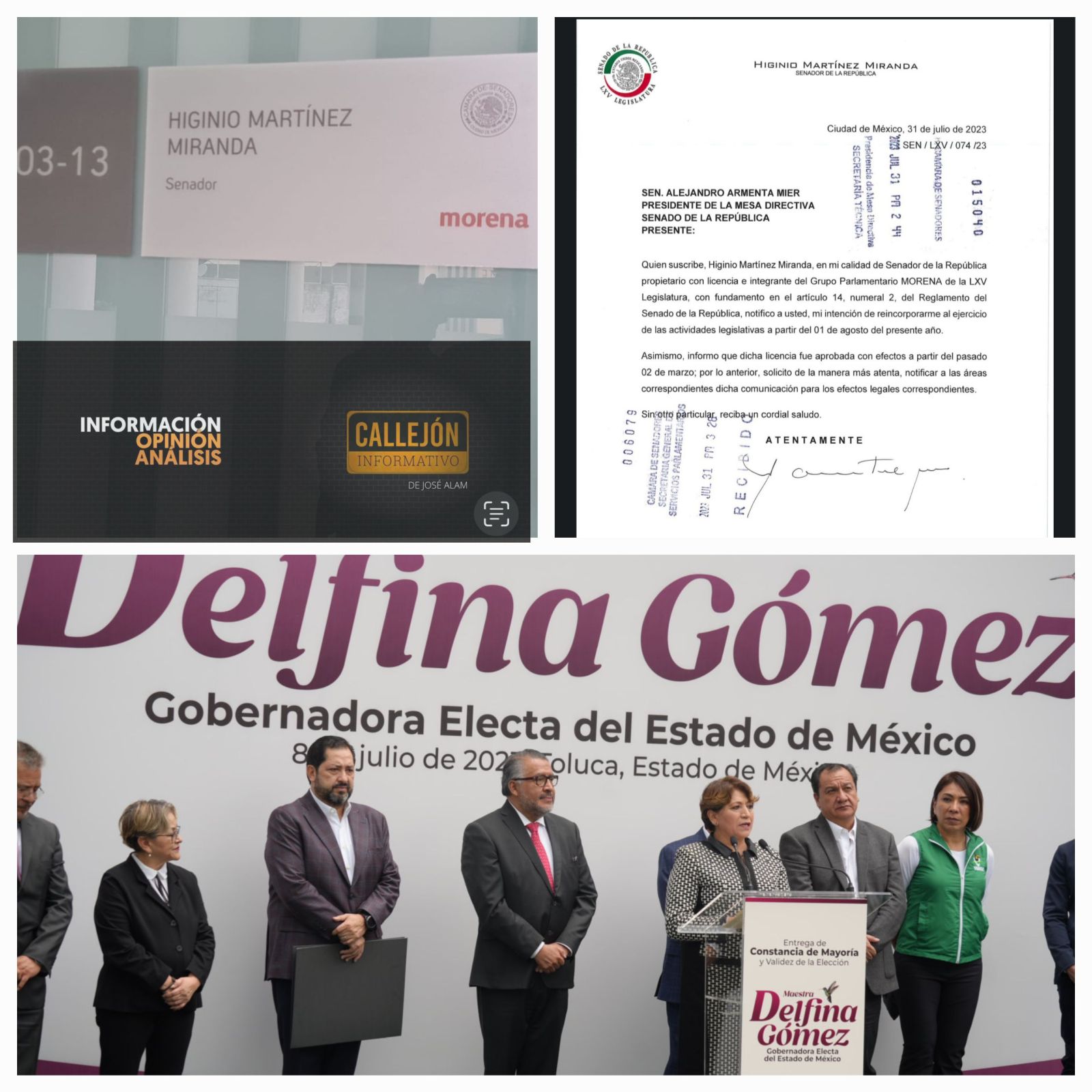 Por la izquierda: El senador de Morena, Higinio Martínez Miranda, regresó al Senado de la República desde el primero de Agosto, así lo informó a la Mesa Directiva, por lo que no es opción para el gabinete de Delfina Gómez Álvarez, mientras Horacio Duarte Olivares se perfila como el próximo secretario General de Gobierno.