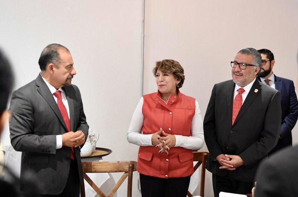 Por la izquierda: La Gobernadora del Estado de México, Delfina Gómez Álvarez encabezó la primera Mesa de Coordinación para la Construcción de la Paz en la zona Oriente del Estado de México, como parte de las acciones para combatir la inseguridad en la entidad.