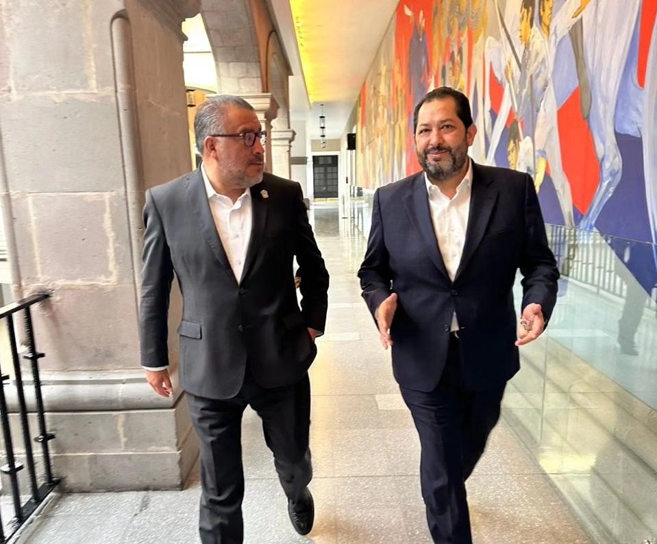 Por la izquierda: El secretario General de Gobierno, Horacio Duarte Olivares y Francisco Vázquez Rodríguez, actual representante de morena ante el IEEM, se dejaron ver caminando en Palacio de Gobierno, luego de sostener una reunión.