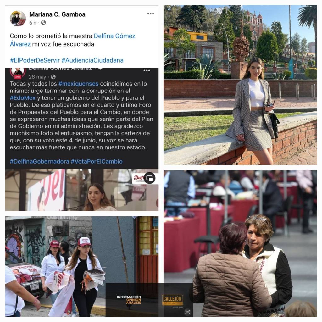 Por la izquierda: La ex presidenta del organismo DIF Metepec, Mariana Cabeza Gamboa, celebró la realización de la primera Audiencia Ciudadana que encabezó la gobernadora Delfina Gómez Álvarez, propuesta que precisamente planteó en el último Foro de Propuestas del Pueblo para el Cambio. En aquel momento, Cabeza Gamboa propuso que se lleven a cabo Audiencias Itinerantes, en las diferentes regiones de la entidad mexiquense.
