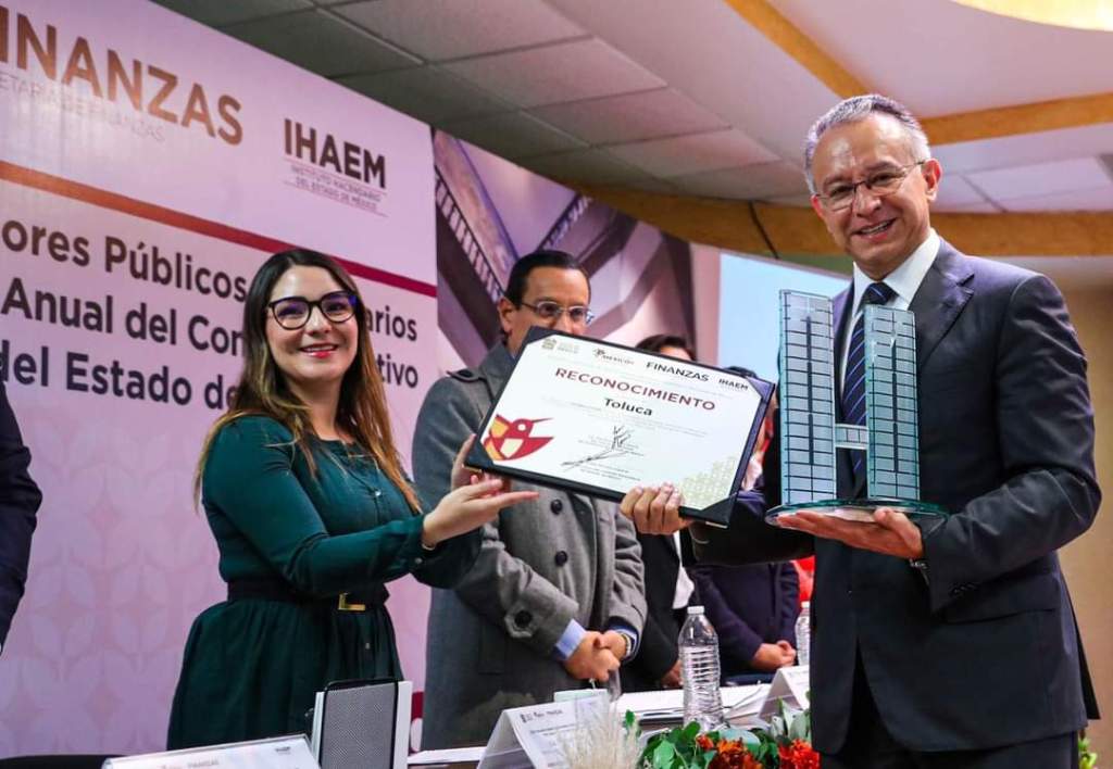 Por el centro: En momentos de efervescencia política en la capital del estado; la secretaria de Finanzas del Gobierno estatal, Paulina Moreno García, entregó el premio de primer lugar otorgado por el Instituto Hacendario (IHAEM) al presidente Municipal de Toluca, Raymundo Martínez Carbajal, como la demarcación con mejor desempeño recaudatorio. Esto indica que para el IHAEM, Toluca destaca por su mejor continua en la hacienda pública y en el marco del sistema de coordinación correspondiente.
